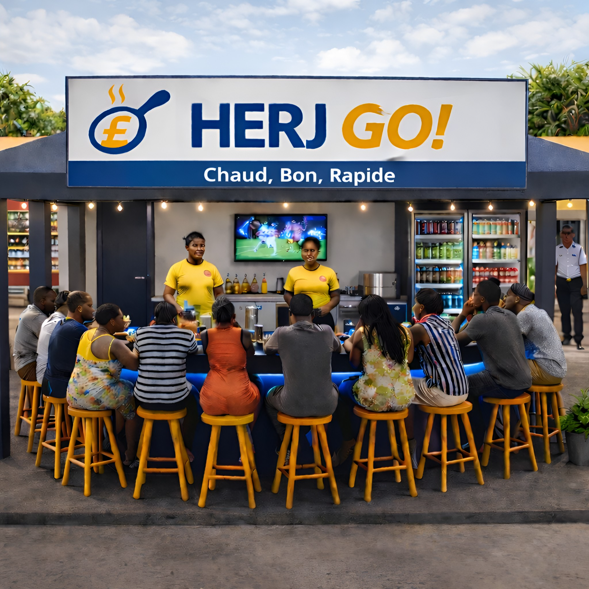 Herj GO ! est un fast-food moderne et convivial spécialisé dans la vente de plats de spaghettis et de coquillettes bien garnis, accompagnés de yaourts artisanaux et de boissons locales rafraîchissantes.